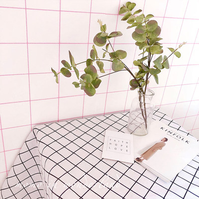 ins简约白色格子棉麻布艺小清新装饰桌布北欧美食网红拍照背景布_虎窝淘